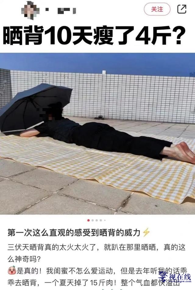 进入三伏天,网上掀起一股“晒背风”,各类伏天养生妙招火爆出圈。有网友认为三伏天晒背是“不要钱的‘天灸’”,能够祛湿、补充阳气,也有网友认为没有效果,甚至有网友出现晒伤、中暑等症状。近日,广东佛山一女子发帖称,自己在楼顶晒后背10天后瘦4斤,并称每天晒半个…
