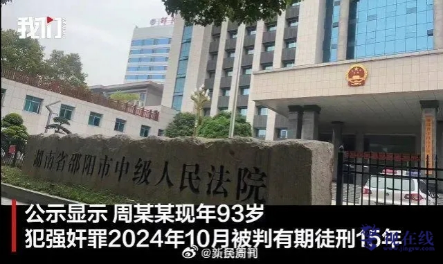 公示显示,周某某现年93岁,犯强奸罪2024年10月被判有期徒刑15年,看守所以周某某生活不能自理为由拒绝收押,建议法院暂予监外执行。17日记者从邵阳市中级人民法院获悉,此公示属实。记者从邵阳县司法局获悉,法院已和该局对接,将对周某某进行社区矫正。澎湃新闻从邵阳中院获悉,周某某于2022年犯罪,涉侵犯未成年人。也就是说周某某在91岁时强奸了未成年人。根据我国法律规定,75周岁以上的人犯罪在量刑、服刑等多方面可获从轻或减轻等法律待遇,或基于现实情况而不予收监服刑。近年来农村老年人性侵留守儿童的案例时有发生,农村地区的未成年人由于家庭监护缺失情况较多,学校防性侵教育工作更应该加强,政府和相关司法部门要加快建立儿童防性侵宣传、预警、发现、报告和救助工作机制。