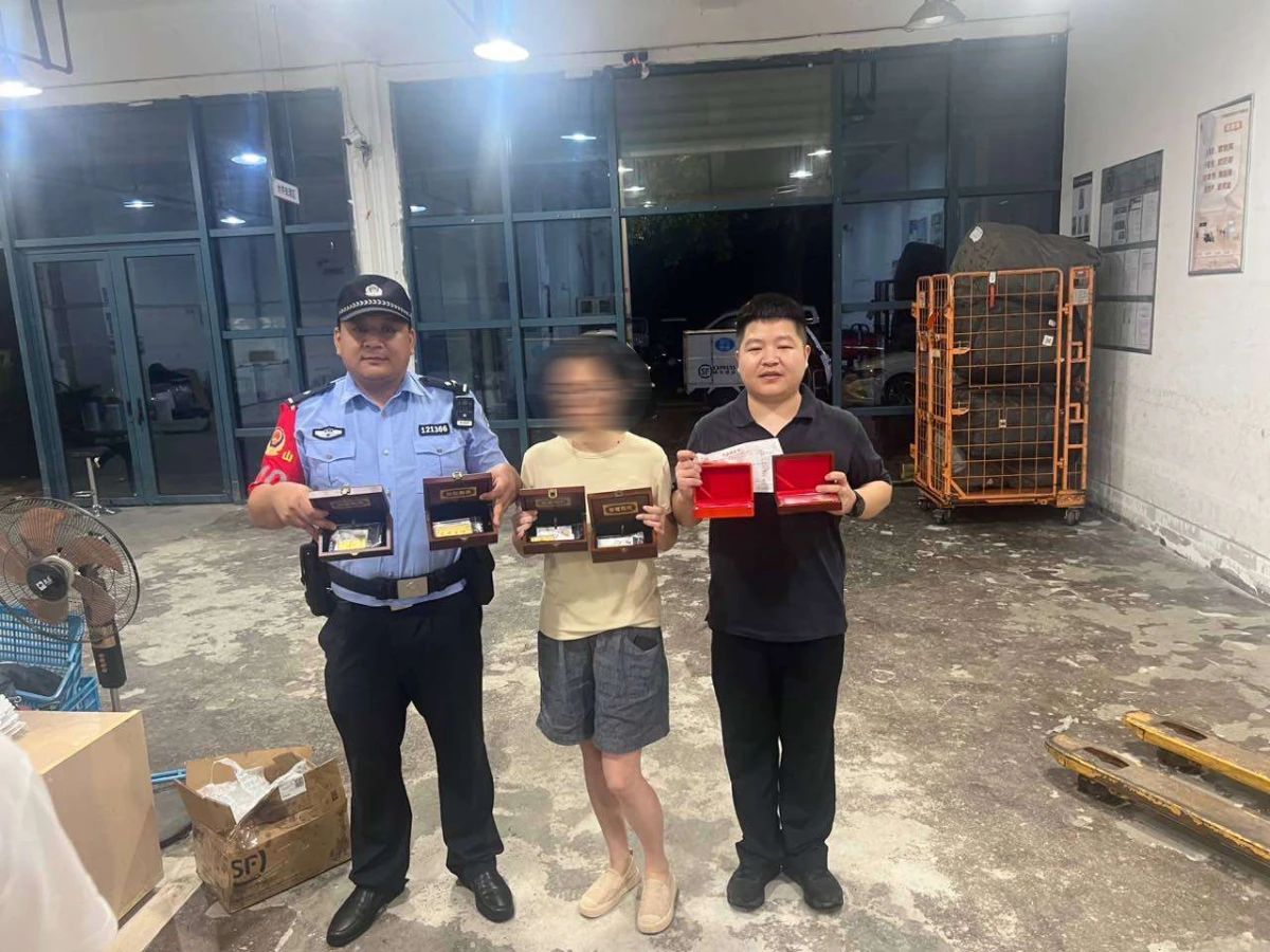 危急关头,还是民警靠得住。经过余姚市反诈中心联系,快递点负责人查询后给出回复:快递还在物流点,正准备发车!一收到回复,民警立即带领当事人赶往现场,找回包裹并打开清点,价值10万余元的金条因此成功保住。